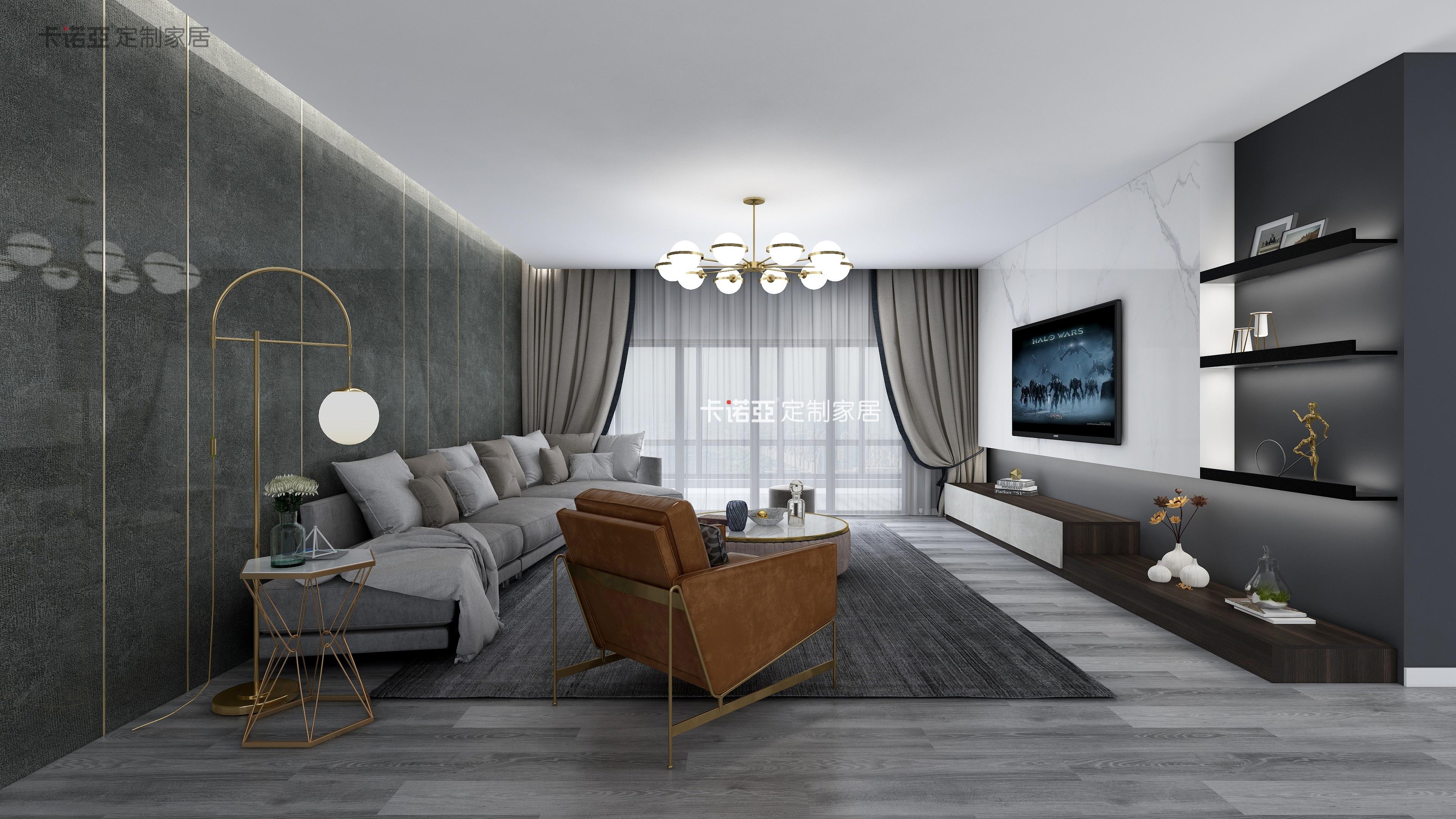 如果不想要客厅的轻奢感太过浓烈,还可以用黑灰色元素来平衡金属元素的高级感。通过调节这两种元素之间的平衡,设计出最适合自己的轻奢风~