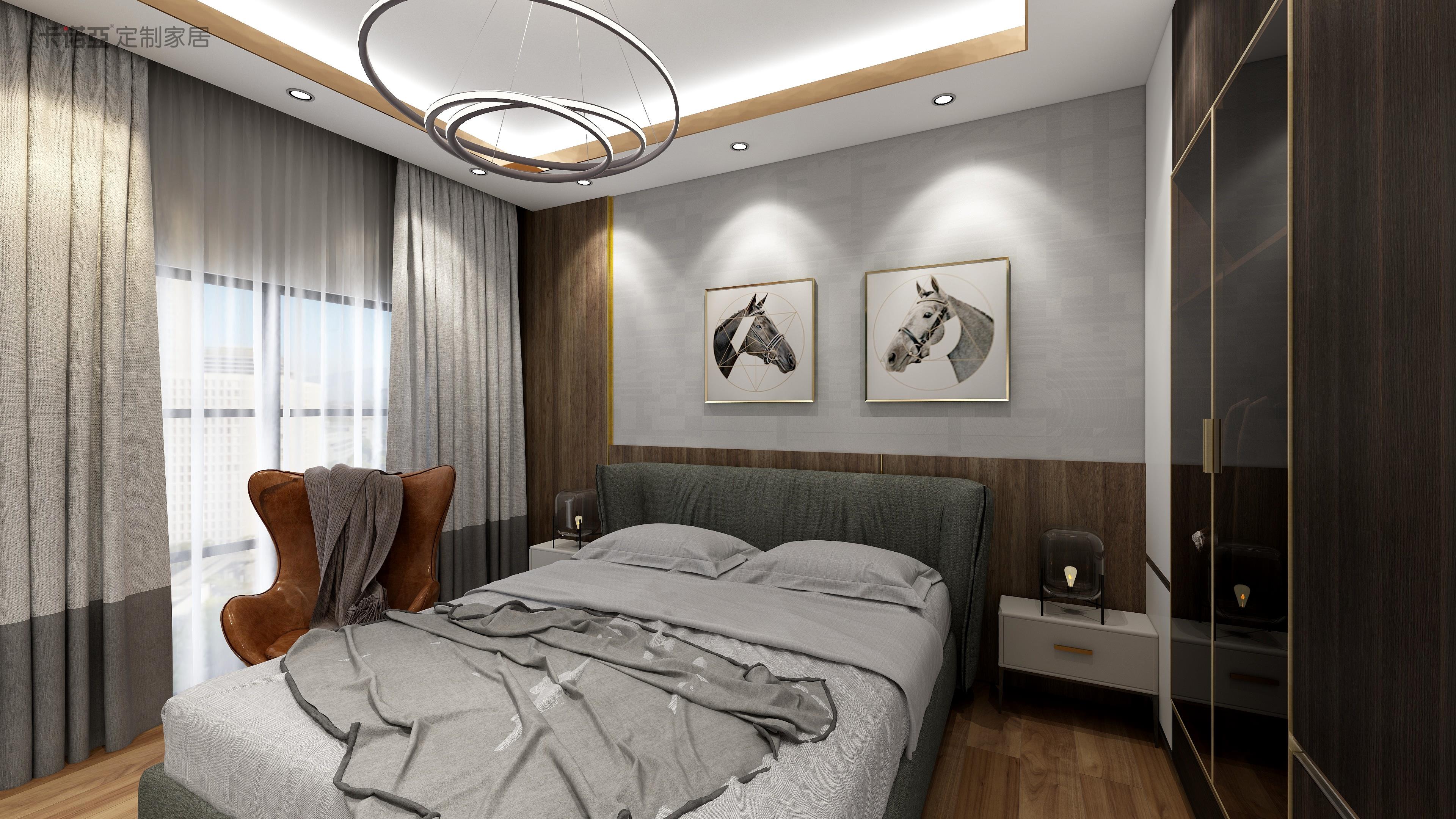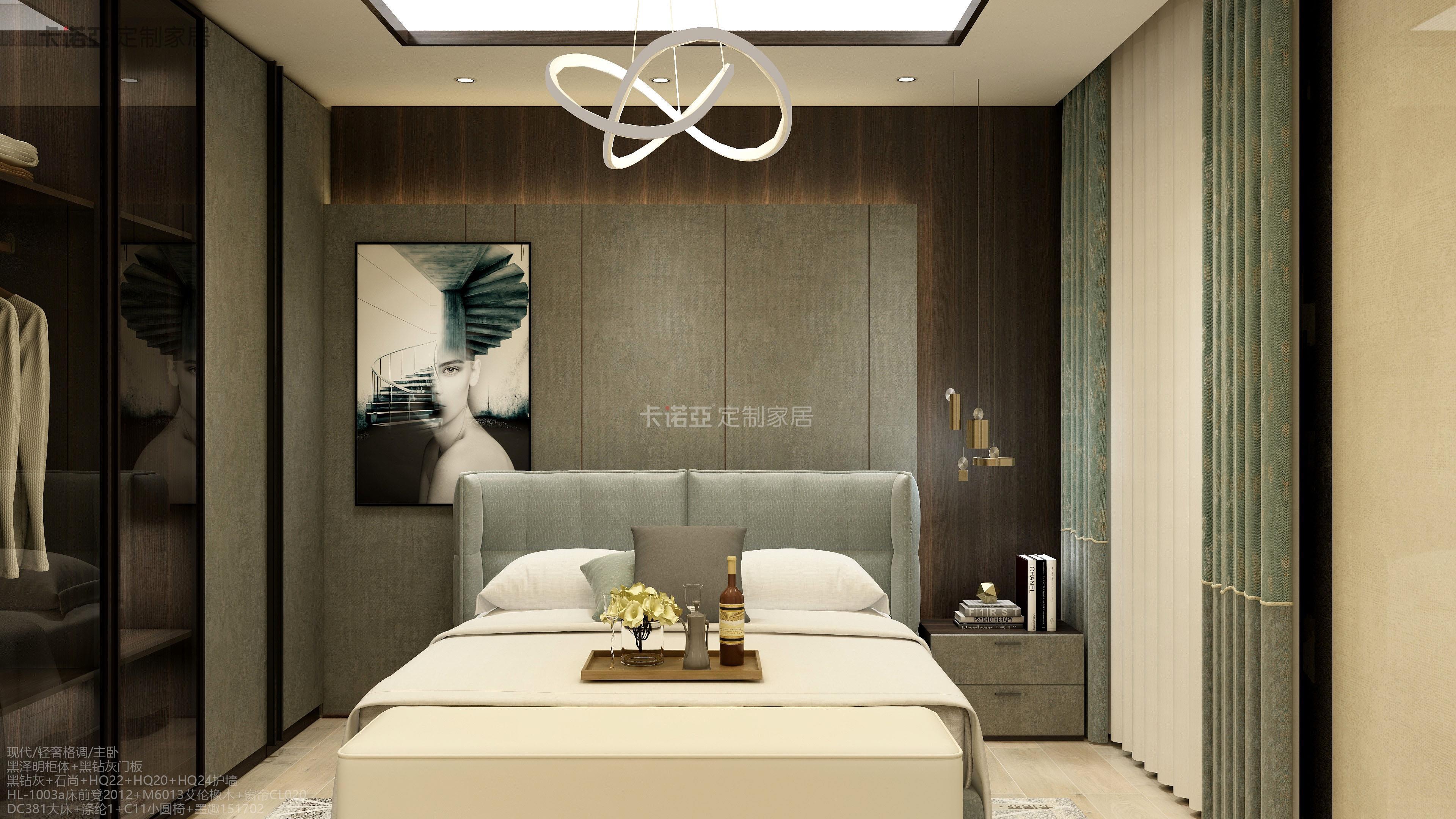 卧房是家里面主要的休息场所,所以能不能营造出舒适的宜居感非常重要。轻奢风的卧房,床头可选择软包设计,背景墙建议护墙板形式,优雅轻奢的同时,也能提高使用的舒适度。床品建议以浅色为主,这样不至于让空间的色彩太过抢眼,更显舒适协调。