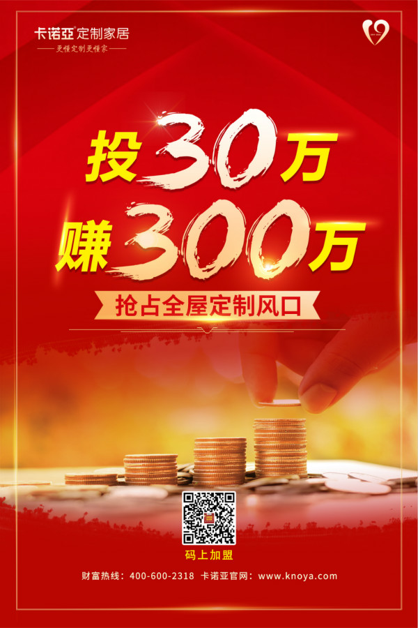 选择比努力更重要,5月7日及5月28日的“更懂定制更赚钱”卡诺亚VIP财富分享会面向全国火热招商,热诚欢迎有识之士加盟,我们将为您创造更大的平台、更多的财富机会!