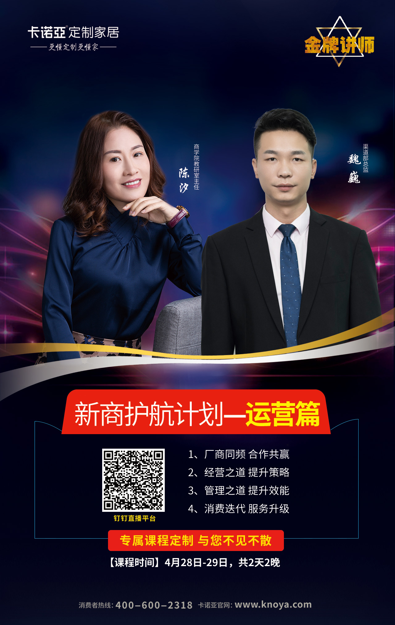 无忧经营:销售、设计、复尺、下单、运输、仓储、送货、安装、验收、售后服务等,由卡诺亚商学院金牌讲师提供全流程培训与支持。