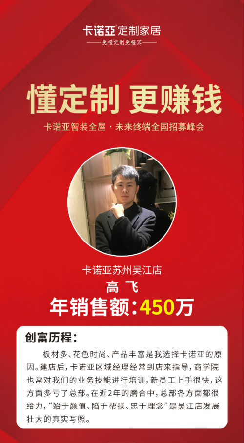 想要加盟全屋定制品牌赚钱,以上三点是非常关键的因素,希望大家能对此有所了解。加盟全屋定制选择卡诺亚定制家居,作为中国至早的定制家居品牌,准上市公司,行业生产规模前五,产品涵盖5大基材、6大空间、7大风格及20个系列,有足够的运营经验和资本,有系统的管理模式和营销体系,能够给予专卖店专业的市场指导和营销建议,让终端经销商更具战斗力,盈利有保障。