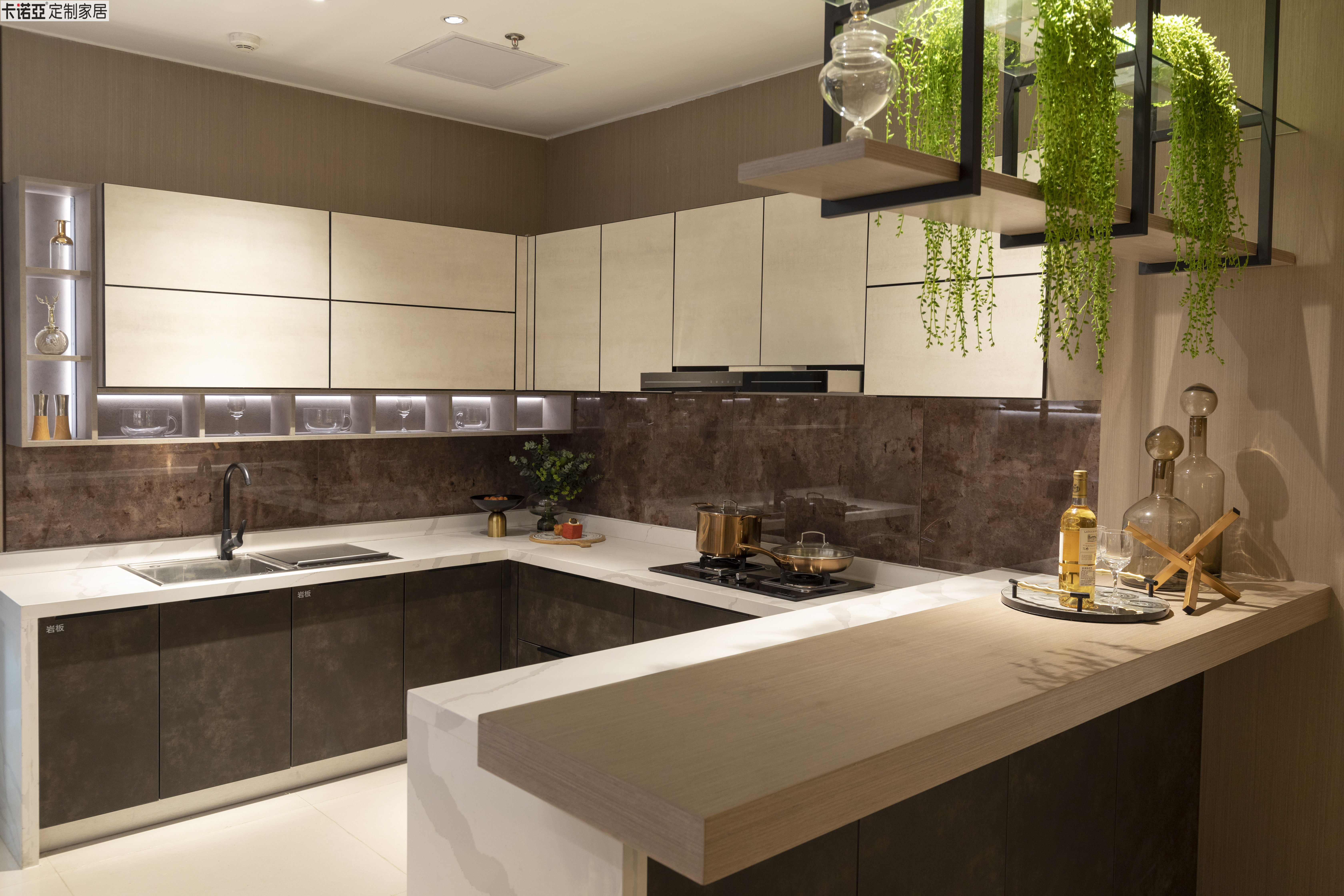 作为厨房重要的区域,岩板除了能应用在厨房空间的整体建筑材料以外,还能应用于灶台台面的饰面建材,由于其致密度高,莫氏硬度达到9级,易打理、空间大、不留菌、不发霉、耐腐蚀、耐高温等优越性能,深受定制家居的消费者青睐。