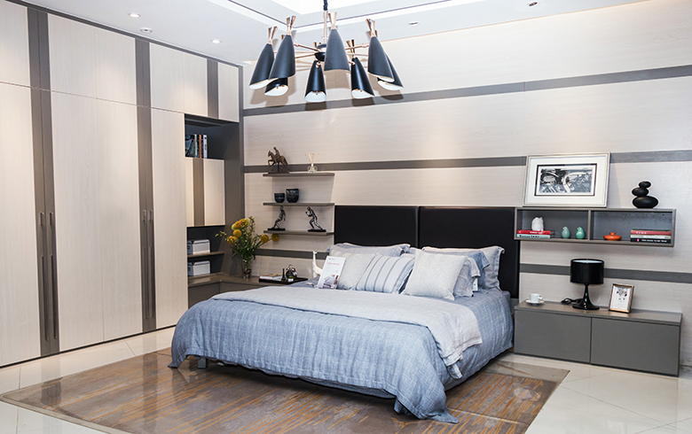 整体衣柜可以按照消费者的需要进行设计,顶部空间也可以放被褥、或者孩子的玩具。再通过衣柜推拉门色调的选择,实现和整个居室的装修浑然一体。如果卧室足够大的话,还可以用整体衣柜设计一个步入式衣帽间,外面设置一个颇具风格的推拉门,一个私有空间就这样打造出来了。