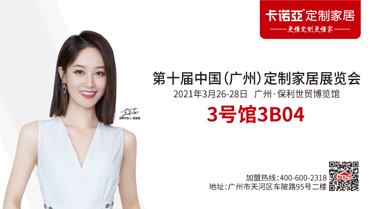 百闻不如一见,3月26-28日中国(广州)定制家居展览会在广州保利世贸博览馆召开,来卡诺亚定制家居3B04展馆先睹为快吧。对于加盟哪个品牌,相信到时候你心中自然有了答案。