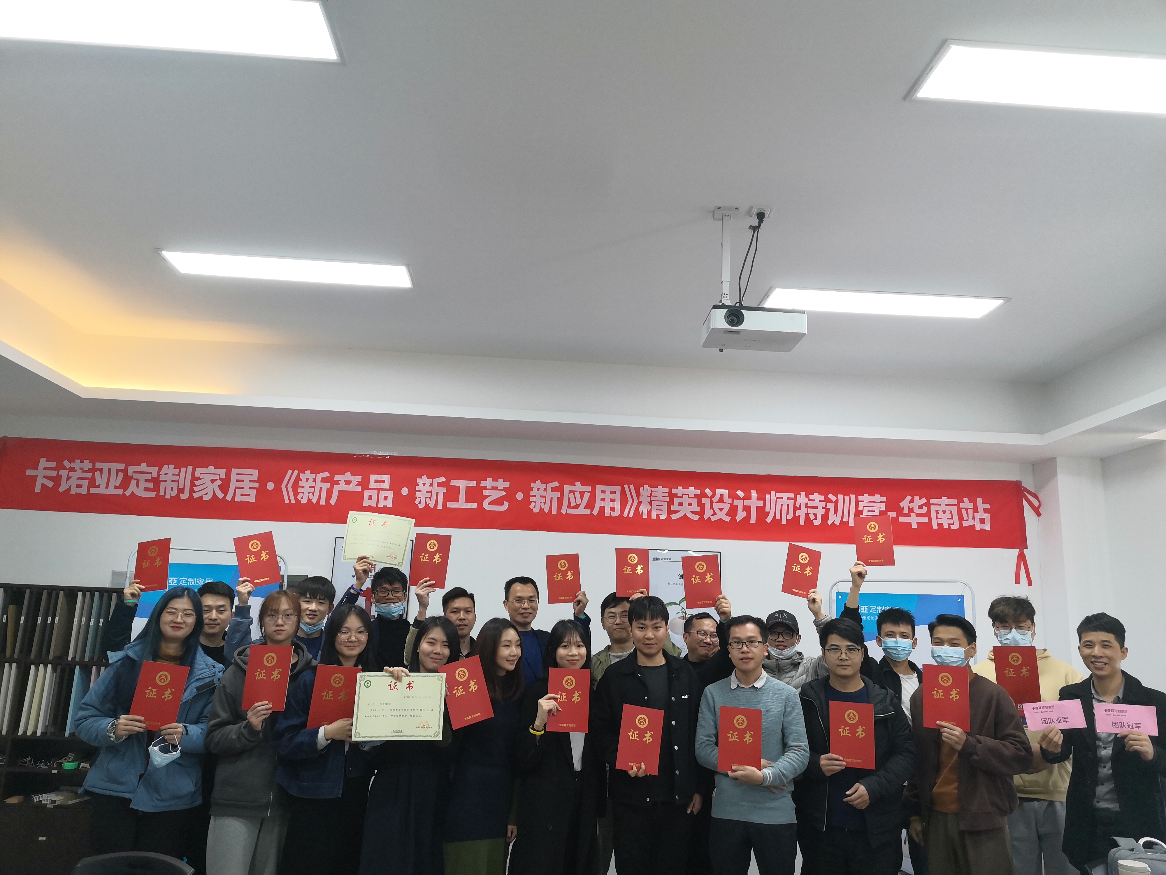 其次,卡诺亚定制家居还经常开展培训活动为经销商赋能。不仅有设计师、导购等培训,还有关于经销商经营管理、产品理念、营销方案等方面培训。强大的人才培养能力,也助推经销商和品牌一起快速成长。